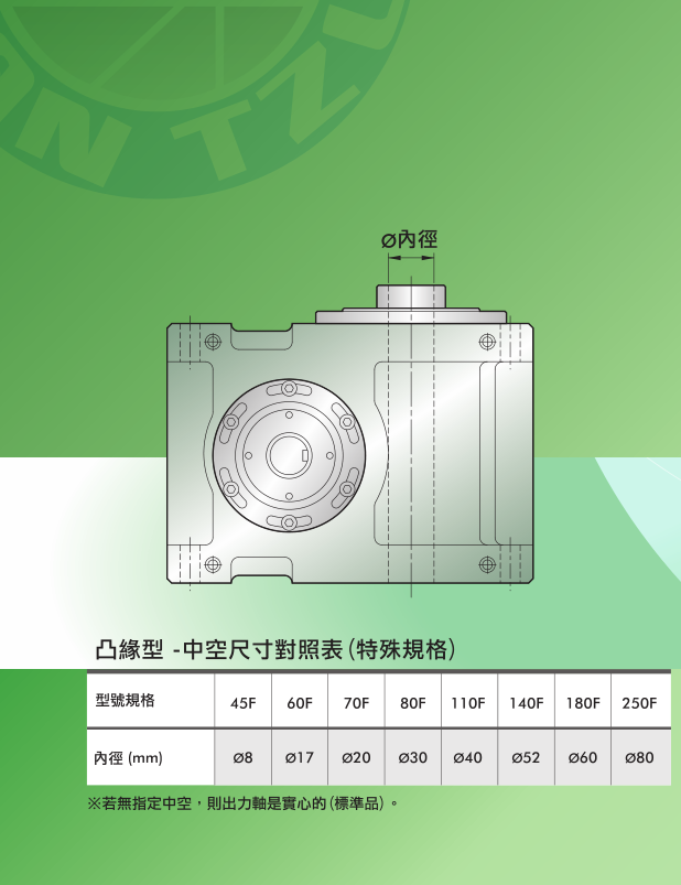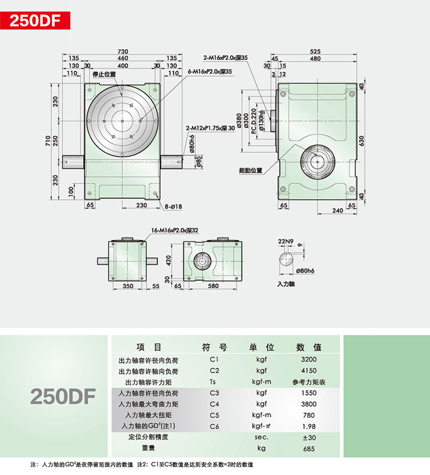 凸轮分割器DF凸缘法兰型具有 重负荷特性,可承受较大的垂直径向或轴向压力,其输出轴为法兰盘式设计,有凸缘中心,盘面螺孔,定位,销孔,固定面宽大,可使链接件更具坚实平稳。适用于较大负荷的回转式圆盘驱动场合,DF凸轮分割器广泛使用在各类盘式加工机械及类似机构的产业机械,自动化间歇驱动部,驱动圆盘。